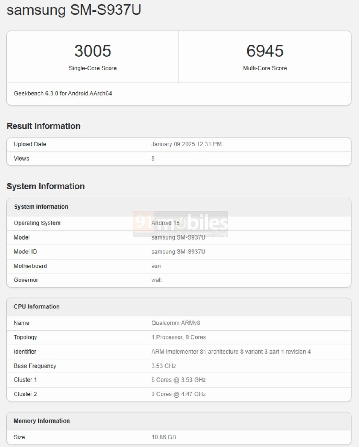 The post Samsung Galaxy S25 Slim appears on Geekbench with key specs, hints at imminent launch first appeared on 91mobiles.com.