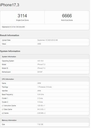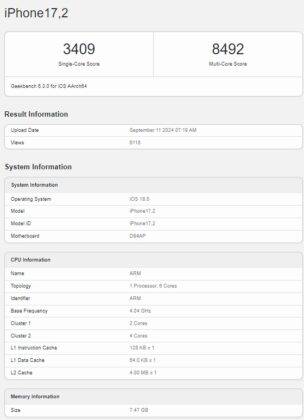 iPhone 16, iPhone 16 Pro Max Geekbench scores