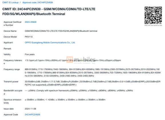 - As spotted by 91mobiles, the OPPO phone in question bears the model number ‘PKV110‘ and the applicant/production company is OPPO, as per MIIT (Ministry of Industry and Information Technology).