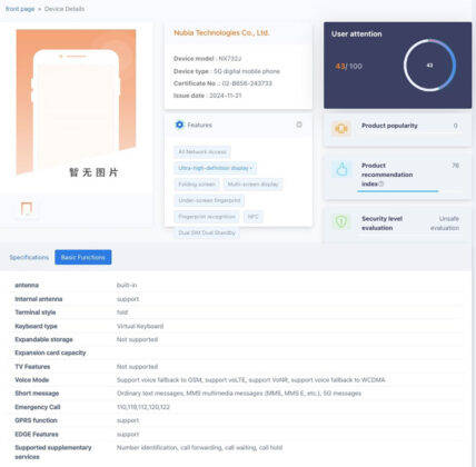 The nubia Flip II was spotted on MIIT as well and this listing confirms its key specifications. nubia Flip II carries the model number NX732J and its dimensions are 169.4 x 76 x 7.2 mm. The foldable weighs 193g and supports 5G and 4G LTE.