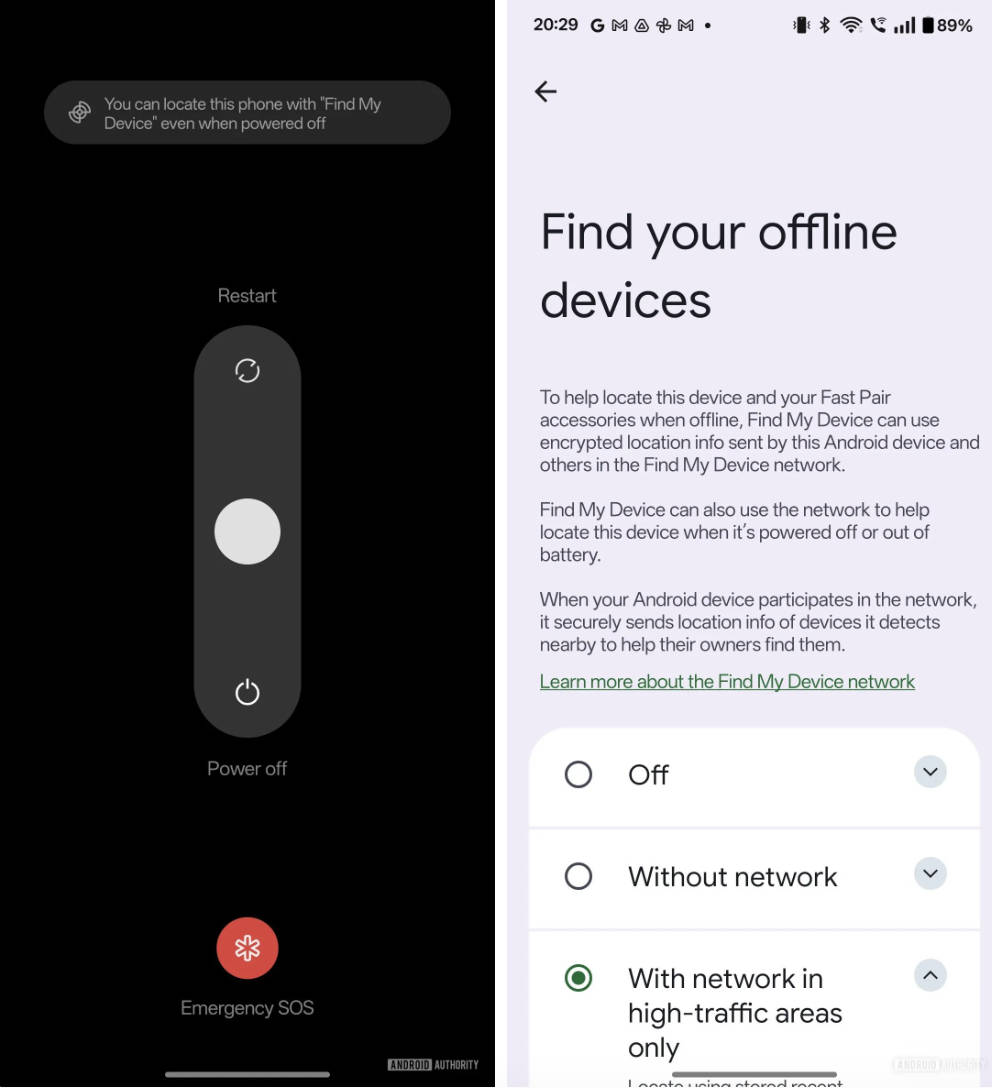 - Android Authority shared images which shows a message that reads ‘You can locate this phone with ‘Find My Device’ even when powered off” in its power menu.