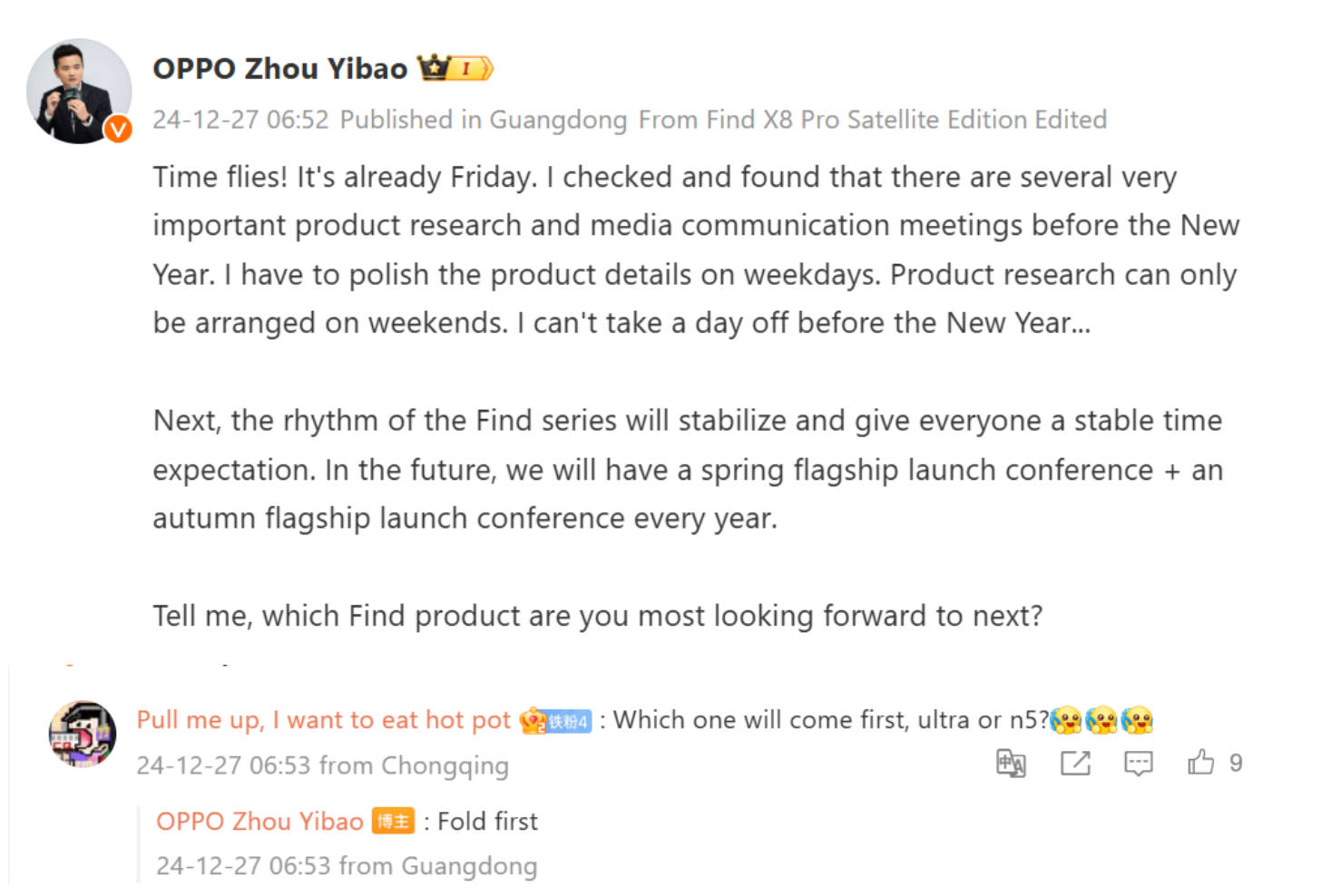 - However, he did confirm that the foldable Find N5 will be the first to launch ahead of the Find X8 Ultra.
