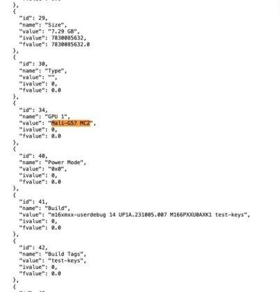 - The phone is powered by an octa-core processor with 6 cores clocked at 2GHz and another 2 cores at 2.40GHz. The source code section mentions: Mali-G57 MC2 GPU.