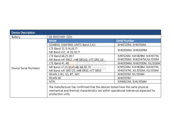 - The battery on the standard variant is listed carries a model number EB-BS931ABY (SDI).