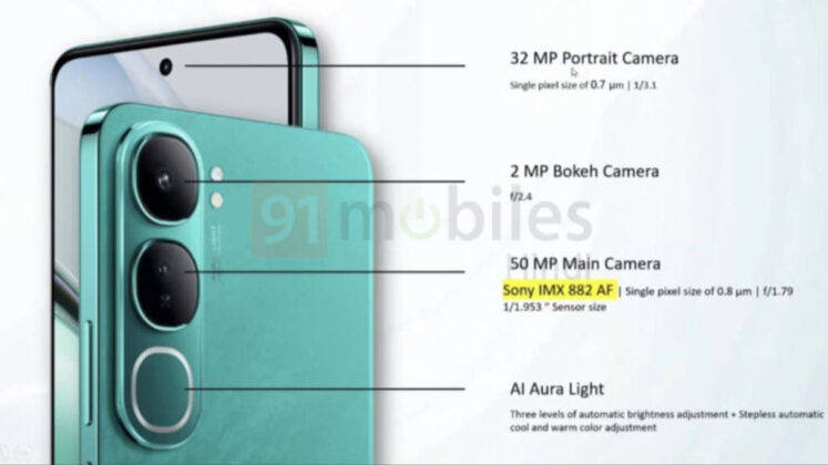 - Camera: The phone may feature a 50MP Sony IMX882 primary and a 2MP bokeh sensor on the back. It could have a 32MP shooter on the front for selfies and video chats. The renders show the phone will feature a glowing LED ring below the camera sensors.