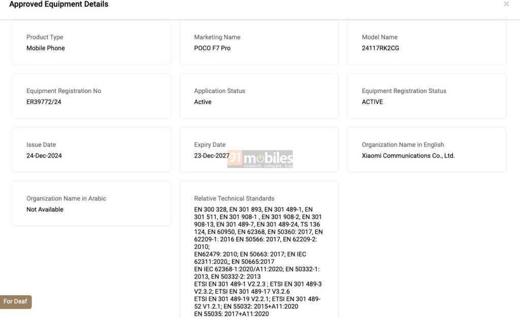 - POCO F7 Pro’s global version with model number 24117RK2CG has been certified by UAE’s TDRA body. This confirms the phone’s release in the Gulf country.